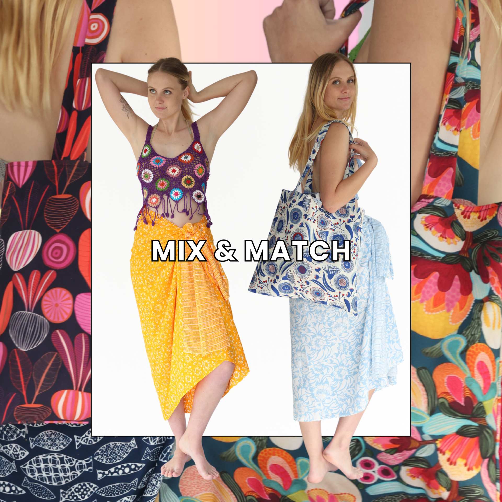 Choose one of our bright and colourful sarongs and mix it up with a crochet halter top bikini and a tote bag